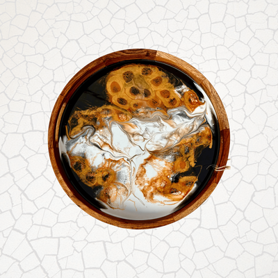 This large round tray is a stunning blend of functionality and artistry. Whether used as an elegant serving tray or a stylish home accessory, each piece is thoughtfully designed to bring both beauty and practicality to your space. Every artwork is unique, individually handcrafted by Nicki, ensuring a one-of-a-kind creation for your home.